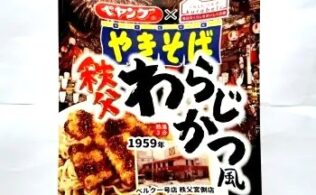 2022年12月に発売された、ベルク限定販売の ペヤング 秩父 わらじかつ風 やきそば です。