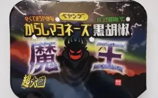 2022年11月に発売された、ペヤング 超大盛 からしマヨネーズ 黒胡椒やきそば魔王 です。
