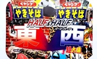 2023年3月に発売された、ペヤング 超大盛 やきそば ハーフ&ハーフ 東西 です。