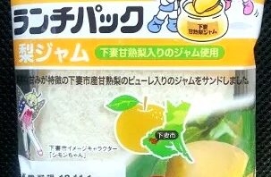 ランチパック ランチパックシリーズ - 梨ジャム - パッケージに下妻市イメージキャラクターの「シモンちゃん」が描かれている、下妻完熟梨入りのジャムを使用した、ヤマザキランチパックです。 2025.10.07 ランチパック