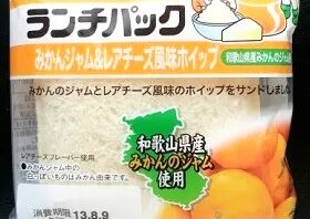 ランチパック ランチパックシリーズ - みかんジャム&レアチーズ風味ホイップ - 和歌山県産みかんのジャムとレアチーズ風味ホイップを一緒にサンドした、ヤマザキランチパックです。 2025.10.11 ランチパック