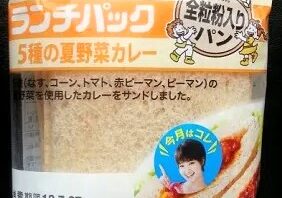 ランチパック ランチパックシリーズ - 5種の夏野菜カレー - なす・コーン・トマト・赤ピーマン・ピーマンの夏野菜5種が入ったカレーを、全粒粉入りパンにサンドした、ヤマザキランチパックです。 2025.10.12 ランチパック