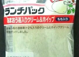 あまおう苺の濃縮果汁2%入りクリームとホイップクリームを求肥で包んだ、ヤマザキランチパックです。