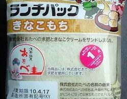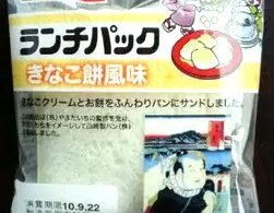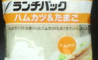 ランチパックの前に筆記体の小文字の「エフ」がある FamilyMart 限定販売の、ヤマザキランチパックです。