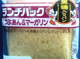 黒糖入りパンにつぶあんとマーガリンを一緒にサンドした、ヤマザキランチパッックです。