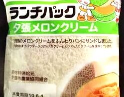 ランチパック ランチパックシリーズ - 夕張メロンクリーム - 素材料供給元・夕張市農業協同組合とパッケージに書かれた、夕張メロン果汁パウダー(0.02%)を使用の、ヤマザキランチパッックです。 2025.11.05 ランチパック