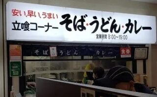 新潟県新潟市の万代シティにあるバスセンターで、行列が出来ている立ち食いそばの人気のカレー。