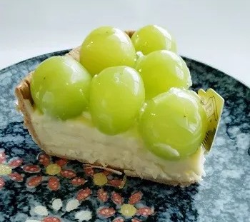 そのシャインマスカット晴王を1粒食べてみました。シャリっとした歯応えとジューシーな甘さ。チーズタルトと一緒に食べると、シャインマスカット晴王にクリームを添えて食べているようで、とても贅沢なおいしさです。