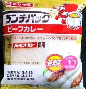 今回のランチパックは、2013年4月に発売された ビーフカレー です。ランチパックでは、数多くの種類のカレーが登場して来ました。で今回は、あのハウス食品さんのバーモントカレーがランチパックになりました。家庭で作るカレーの王者として、昔から親しまれているハウス食品さんのバーモントカレー。平成25年現在では、いろんな種類のカレールーが売れてますが、昭和のカレーといったら「りんごとはちみつ、とろ~りとけてる・・・」のフレーズが耳に残る、このバーモントカレーが当時僕等子供たちのカレーでしたね。他にもジャワカレーなどもありましたが、あれはそれなりに辛く、大人のカレーといった括りでした。話が長くなりましたが、バーモントカレーを使った ランチパック ビーフカレー を食べてみたいと思います。