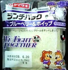 今回のランチパックは、2009年6月に発売された ブルーベリー&ホイップ です。ランチパックサンフレッチェ広島が異色のコラボレーション?以前に広島東洋カープとのコラボランチパックがありましたが、広島という土地柄なのか、ヤマザキさんとのつながりが深いように思われますが・・・。そんな思惑も含め、早速食べてみる事にしましょう。