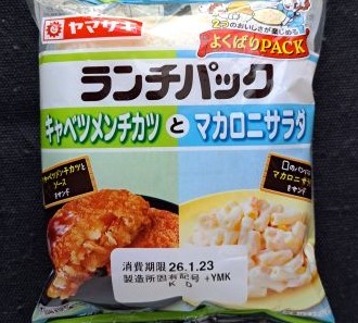 今回のランチパックは、2026年1月に発売された キャベツメンチカツ と マカロニサラダ です。パッケージの右上に、「2つのおいしさがたのしめる・よくばりPACK 」の文字がある、これと似た 2つの味が楽しめるシリーズ とは少し違う組み合わせになっています。一目でわかる違いが、パッケージが左右にセパレートされてるデザインで、今回は左が キャベツメンチカツ で、右が マカロニサラダ になっています。この2つの共通点を考えてみると、よくメンチカツと一緒にマカロニサラダが添えられていますが、そのマカロニサラダが少量の場合が多々あります。世の中のマカロニサラダ好きが方にとって、できたらたくさん食べたいのは山々なはず?ランチパックでは山盛りとはいきませんが、よくばり程度にサンドしました?では早速食べてみる事にしましょう。