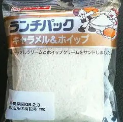今回はランチパックは、2008年2月に発売された キャラメル&ホイップ です。前回は ランチパック キャラメル&コーヒー を掲載しましたが、これはコーヒーの代わりにホイップになっています。この違いはどのような感じなのか、早速食べてみる事にしましょう。