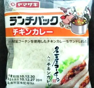 今回のランチパックは、2010年12月に発売された チキンカレー です。それも名古屋コーチン入りのチキンカレーです。もう皆さんは名古屋コーチンをご存知と思います。愛知県で育てられていて、高級食材として人気がある鶏です。そんな名古屋コーチンがランチパックに使われるなんて凄いことですね。では早速食べてみる事にしましょう。