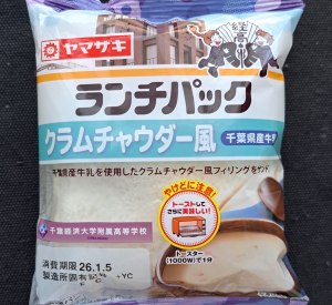 今回のランチパックは、2026年1月に発売された クラムチャウダー風 です。新し年(2026年)がはじまり、まだまだ寒い日々が続いています。そんな時には、温かい物が欲しくなります。そこでクラムチャウダーはいかがでしょうか?でも簡単に食するのは難しいですよね。でもそれをかなえてくれるのが、ヤマザキ ランチパック です。ただ実際のクラムチャウダーのように温かくはありませんが、気分だけでもおいしくいただきたいと思います。このランチパックは千葉経済大学付属高等学校の生徒さんが考えてくれました。では千葉県産牛乳をしたランチパックを、早速食べてみる事にしましょう。
