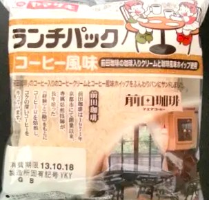 今回のランチパックは、2013年10月に発売された コーヒー風味 です。関東ではあまりなじみがありませんが、1971年に京都市で創業した前田珈琲。その前田珈琲の珈琲入りクリームと珈琲風味ホイップを使用したランチパックです。この機会に京都市で愛されている珈琲の味を、ほんの少し味わってみることにしましょう。