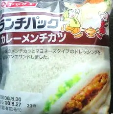 今回のランチパックは、2008年8月に発売された カレーメンチカツ です。ランチパックのメンチカツは、食べ応えがあって僕は好きです。パンパンに膨らんだパッケージを手に取った瞬間から、そのボリュームが感じられます。お惣菜シリーズで定番のメンチカツを、少し工夫を凝らしカレー味を付けて登場させて来ました。普通のメンチカツもおいしいけれど、カレー味は・・・?では早速食べてみることにしましよう。