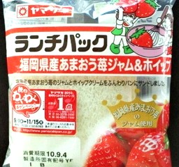 今回のランチパックは、2010年9月に発売された 福岡県産あまおう苺ジャム&ホイップ です。ランチパックに登場するジャムの中で、苺の占める割合が多いように思われます。そんな中でも、地方のブランド苺を使った苺ジャムが増えて来ました。以前には、 ランチパック あまおうジャム&ホイップ が登場してます。そして今回は、福岡県産のあまおうを使った、産地にこだわった苺ジャムがランチパックになりました。あまおうが誕生してまだ数年ですが、苺の粒も大きいだけでなく、名前の存在感も大きいです。福岡県で生れ、温暖な気候の下で育ったこの苺。さてランチパックではどんな味なのでしょう?早速食べてみる事にしましょう。