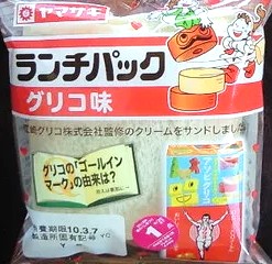 今回のランチパックは、2010年3月に発売された グリコ味 です。グリコといえば、両手をあげているあのお馴染みのゴールインマーク。それに昔から変わらないあのキャラメルの甘さ。今回のランチパックの中に、江崎グリコ株式会社監修のクリームがサンドされています。さてそのランチパックのお味は?では早速食べてみる事にしましょう。
