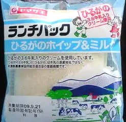 今回のランチパックは、2009年5月に発売された ひるがのホイップ&ミルク です。皆さんひるがの牛乳を知っていますか?岐阜県の北部にある、飛騨という地名を聞いた事があると思いますが、その山間部にひるがの高原があります。その辺りを源とし、郡上八幡を通り美濃そして岐阜を流れている長良川があります。その長良川の上流、奥美濃地方の酪農家の人達が作ったのが、このひるがの牛乳なのです。ランチパックでは、地方限定の牛乳を使った商品が数多く出ています。今回のランチパックはどうか、早速食べてみる事にしましょう。。