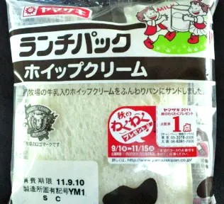 今回のランチパックは、2011年9月に発売された ホイップクリーム です。おー!いつもランチパックで脇役的な存在のホイップクリームが、今回はメインとして華々しく登場。しか~し、今回のホイップクリームはいつもと違うようです。実は信州北白樺高原にある、長門牧場牛乳が入ったホイップクリームなのです。ホイップクリームだけでランチパックのメインになるという事は、それなりの自信がもてる素材といえるでしょう。これは期待していいですよねヤマザキさん。では早速食べてみることにしましょう。