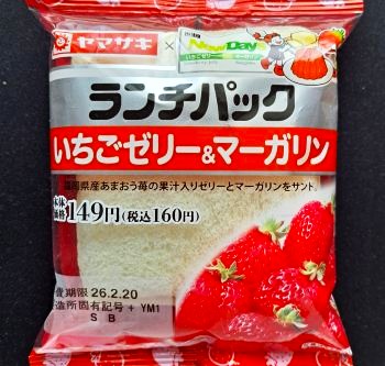 今回のランチパックは、2026年2月に発売された いちごゼリー&マーガリン です。パッケージの上に、NewDays と書かれた駅名票があります。JR東日本エキナカコンビニの NewDays さんでは、不定期で NewDays 限定販売のランチパックが登場します。春に近づくと、苺に関する商品が登場しはじめます。ランチパックでは苺の産地や品種にこだわり、それを使用したジャムやクリームをサンドしています。今回はそのどちらでもない いちごゼリー です。では NewDays 限定販売のランチパックを、早速食べてみる事にしましょう。