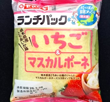 今回のランチパックは、2026年3月に発売された いちご & マスカルポーネ です。パッケージを見て、「あれ~?何かが違う・・・」と感じましたよね。今回のランチパックですが、「ご当地ランチパック大集合!」という企画で、ランチパックを製造している全国の工場エリアの商品を集めました。という事で 関東地区から いちご & マスカルポーネ が選ばれました。では「にっぽん味めぐり 栃木県」を早速食べてみることにしましょう。