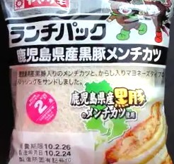 今回のランチパックは、2010年2月に発売された 鹿児島県産黒豚メンチカツ です。ランチパックシリーズに時々登場するメンチカツ。どれも凄く食べ応えがあるボリュームで、お腹が空いていて思いっきり食べたい時には持って来いです。今まで登場したメンチカツシリーズは、キャベツにこだわった物が登場していましたが、今回はお肉にこだわってメンチカツです。鹿児島県産黒豚は「かごしま黒豚」とよばれ、数種類ある各地の黒豚ブランドの中でも、かごしま黒豚だけは別格の扱いらしいです。その鹿児島県産黒豚入りのメンチカツをはさんだランチパックのお味は?では早速食べてみる事にしましょう。