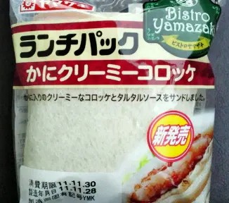 今回のランチパックは、20111年11月に発売された かにクリーミーコロッケ です。久しぶりに登場の ビストロヤマザキ 。以前に数種類販売され、それっきり姿を消していましたが、忘れた頃に再び登場。贅沢な素材を使い、普段のランチパックとは違った美味しさを楽しませてくれる、このビストロヤマザキ。で今回使われた素材は、これ好きな人多いと思う「かに」です。そこで かに をランチパックにするなら、この方法がベストでしょう。