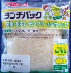 今回のランチパックは、2010年4月に発売された 関東・栃木レモンクリーム&ホイップ です。とうとうレモン牛乳がランチパックになりましたか。実はこれ、「関東」と言っていますが、僕自身その存在を知りませんでした。それに「レモン牛乳」と言ってはいるものの、無果汁のレモンフレーバーを使用した乳飲料です。その存在を知り、初めて飲んだ感想を以前このブログに載せました。さっぱりとした甘酸っぱさで、そしてどこか懐かしい牛乳、いや正確に言うと乳飲料でした。成分分類では牛乳ではないけれど、飲んだ印象はレモン牛乳と言ってしまうのは仕方ないのかな。では早速食べてみる事にしましょう。