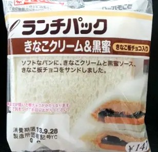 今回のランチパックは、2013年9月に発売された きなこクリーム&黒蜜 です。 きなこを食べるとしら、僕はお餅を食べる時に使います。でも皆さん経験がると思いますが、 きなこを食べている最中に咽(むせ)てしまい、つい吹き飛ばしてしまったことがありませんか?きなこといえば、そのイメージがありますが、これはきなこクリームなので大丈夫です。そしてきなこ板チョコと黒蜜ソースも一緒に入っているので、どんな味が楽しめるか、早速食べてみる事にしましょう。