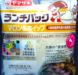 今回のランチパックは、2010年2月に発売された マロン&ホイップ です。このマロン(栗)のクリームに使用されているのが、大阪府能勢町産の銀寄栗です。さて銀寄栗よりもまずは、能勢町は何処にあるのでしょう?調べて見ると、大阪府の地図の一番上に位置する、自然いっぱいの田舎のようです。能勢町を検索し、こちらの 能勢町の観光と物産のページを見ると、鮮やかな自然の風景が現れます。一度閉じてもう一度開くと、今度は夕日の光景は現れました。もう一度同じようにやると、また違った能勢町の自然が現れます。そしてこの自然の中から、240年前に銀寄栗が出来たのです。「当時大粒で品質の良い能勢町の栗は、大坂(現 大阪)からたくさんの銀札を寄せた事から銀寄栗と呼ばれた」と、ランチパックのパッケージに裏面に書かれていました。銀札とは、当時の紙幣の事でしょうね。その銀寄栗入りクリームを使用したランチパックのお味はどんな感じでしょう?では早速食べてみる事にしましょう。