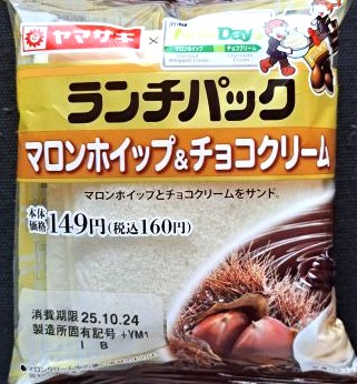 今回のランチパックは、2025年10月に発売された マロンホイップ&チョコクリーム です。パッケージの上に、NewDays と書かれた駅名票があります。JR東日本エキナカコンビニのNewDaysさんでは、不定期でNewDays限定販売のランチパックが登場します。秋の旬の物といえば、マロン(栗)があります。ご本家デイリーヤマザキさんでも毎年マロン(栗)系の商品が発売されますが、たまには少し路線を変えて・・・、JR東日本だけにね?では気をとりなおして、NewDaysさんのマロン系ランチパックを、食べてみる事にしましょう。