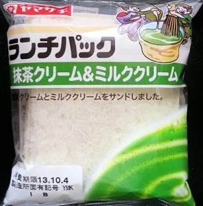 今回のランチパックは、2013年10月に発売された 抹茶クリーム&ミルククリーム です。この 抹茶クリーム&ミルククリーム ですが、8月くらいから販売されてます。既に2度買いましたが、何度食べてもこの抹茶クリームが美味しく、お茶の季節が過ぎてもう10月に入りましたが、これを食べるとあの暑い日々が思い出されます。でも10月なのに、ここ数日は気温30度越えの場所もあり、あの夏の日を懐かしく感じます。3度目の 抹茶クリーム&ミルククリーム を食べて、夏気分を締めくくりたいと思います。