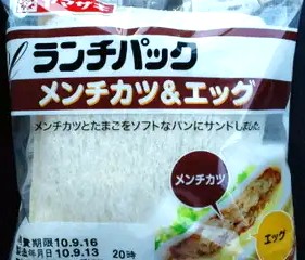 今回のランチパックは、2010年9月に発売された メンチカツ&エッグ です。ランチパックのお惣菜シリーズで、メンチカツもエッグもすでにおなじみの具材です。メンチカツの味は、すでに味覚中枢にインプット済み。エッグは、なんとなく覚えているような・・・いないような?でも想像はつきます。その2つが一緒にランチパックに入りました。さてどんな味なのか、食べてみることにしましょう。