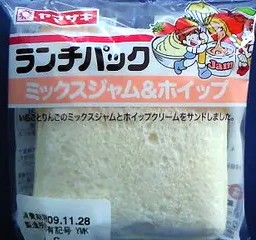 今回のランチパックは、2009年11月に発売された ミックスジャム&ホイップ です。だいぶ前に ランチパック ミックスジャム がありました。今回は前回と同じいちごりんごミックスジャムに、新たにランチパックの脇役であるホイップクリームが加わりました。いざという時のホイップクリームミックスジャムだけでも美味しいけれど、ホイップクリームが一緒になるとどうなるでしょうか。では早速食べてみる事にしましょう。