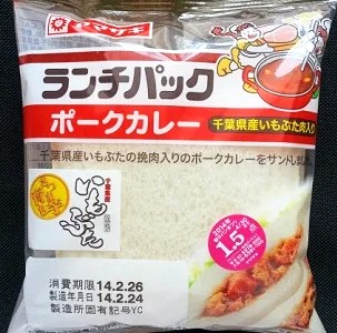 今回のランチパックは、2014年3月に発売された ポークカレー です。毎度の事ですが、ランチパックカレーが何度も登場してます。ちょうど1年前にも、ランチパック 宮城県産豚肉入りカレー使用ポークカレーが登場してます。そこで今年は、千葉県産いもぶた肉入りポークカレーですが、この千葉県産いもぶた肉に関しては、先日掲載したランチパック しょうが焼き風の所で簡単ですが説明しているので、今回は省略させていただきます。では早速食べてみたいと思います。