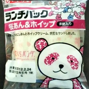 今回のランチパックは、2012年2月に発売された 桜あん&ホイップ です。なんといっても今回のランチパックで目立つのは、さくら模様のパンダです。既にご存知の方もいらっしゃると思いますが、大丸・松坂屋を塒(ねぐら)? にしている東京上野生まれのさくらパンダです。そのさくらパンダが春先取り?の意味もこめて、ヤマザキ ランチパック に登場。もちろんランチパックも桜あんを使い、見た目と味覚でお花見気分真っ盛り!でも今回のランチパックは、食べるとなんだか楽しくなりそー。では早速味わってみましょう。