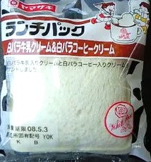 今回のランチパックは、2008年5月に発売され 白バラ牛乳クリーム&白バラコーヒークリーム です。この「白バラ牛乳」ですが、関東ではあまり目にしない牛乳なので、このネーミングに引かれて買って見ました。期待を持ちながら、早速食べて見ることにしましょう。