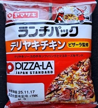 今回のランチパックは、2025年11月に発売された、テリヤキチキン です。パッケージに宅配ピザでおなじみの、PIZZA‐LA(ピザーラ)のロゴが描かれています。そしてピザーラさんテリヤキチキンの写真がありますが、あくまでも写真はイメージなので、あの(PIZZA‐LA・テリヤキチキン)味とはちょっと異なるかも。でもピザーラさん監修なので、これは期待できますね?では早速食べてみる事にしましょう。