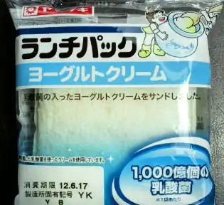 今回のランチパックは、2012年6月に発売された ヨーグルトクリーム です。皆さんヨーグルト食べていますか?今回の ランチパック ヨーグルトクリーム には、なんと1000億個の乳酸菌が含まれているようです。1000億個と聞くと凄いですが、なにせ菌は顕微鏡で確認できるミクロ、いやナノの世界!だからこの狭いランチパックの中に納まっているわけで、実際に乳酸菌が肉眼で見えたらすごいでしょうね。なんてくだらない事を言いましたが、我々の身体に必要となれば大いに歓迎します。その乳酸菌がいっぱい詰まったランチパックを食べてみましょう。
