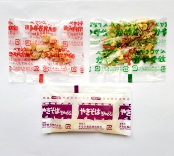 中に やきそばソース・かやく・後入れかやく の3つの袋が入っています