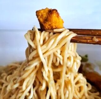 カツかやく が6個入って、秩父名物の 秩父 わらじかつ風 やきそば の出来上がりです