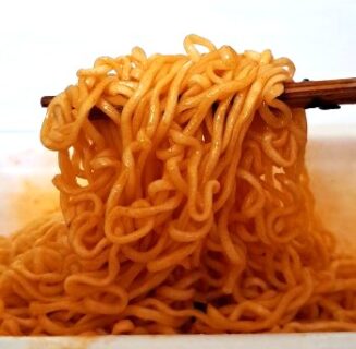 すると白い麺が、赤(オレンジ色)になりました