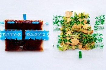 これらを取り出し、 かやくを入れ、熱湯を注ぎます