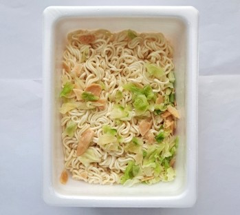 の上に、お湯で戻った キャベツ ・フライドガーリック が見えます