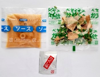 中に ソース ・かやく・かくし味 の3つの袋が入っています
