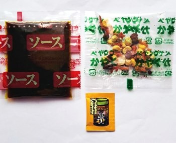 中に ソースかやく小袋 の3つの袋が入っています