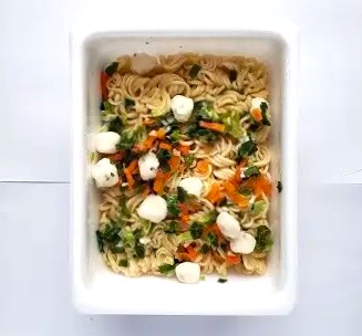 これらを取り出し、 かやく を入れ、熱湯を注ぎます