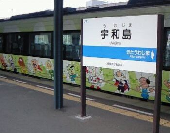 東京に戻って、旅におさらいに調べて見たところ、僕が乗ったばいきんまん号は、タダの列車ではなかったです。松山駅から先の宇和島駅までは、山の中を走るのでカーブが多く、そのために「振り子式」の列車を使っているとの事です。それに非電化のためディーゼル車輌を使用していますが、この気動車2000系は時速120km/hくらいのスピードが出ます。そういえばこのばいきんまん号、時々うなり音を上げて走ってしました。